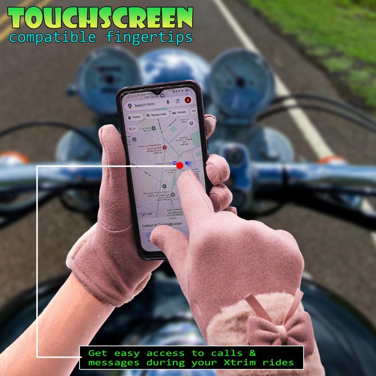 Product Name: Women's Winter Warm Gloves with Cute Bow & Touched Screen� Package Contains: It has 1 Pair of Winter Gloves Material: Fleece WoolPattern: SolidColor: PinkGlove Type: Cute Bow & Touched Screen� Combo: Pack of 1Weight: 77 grm